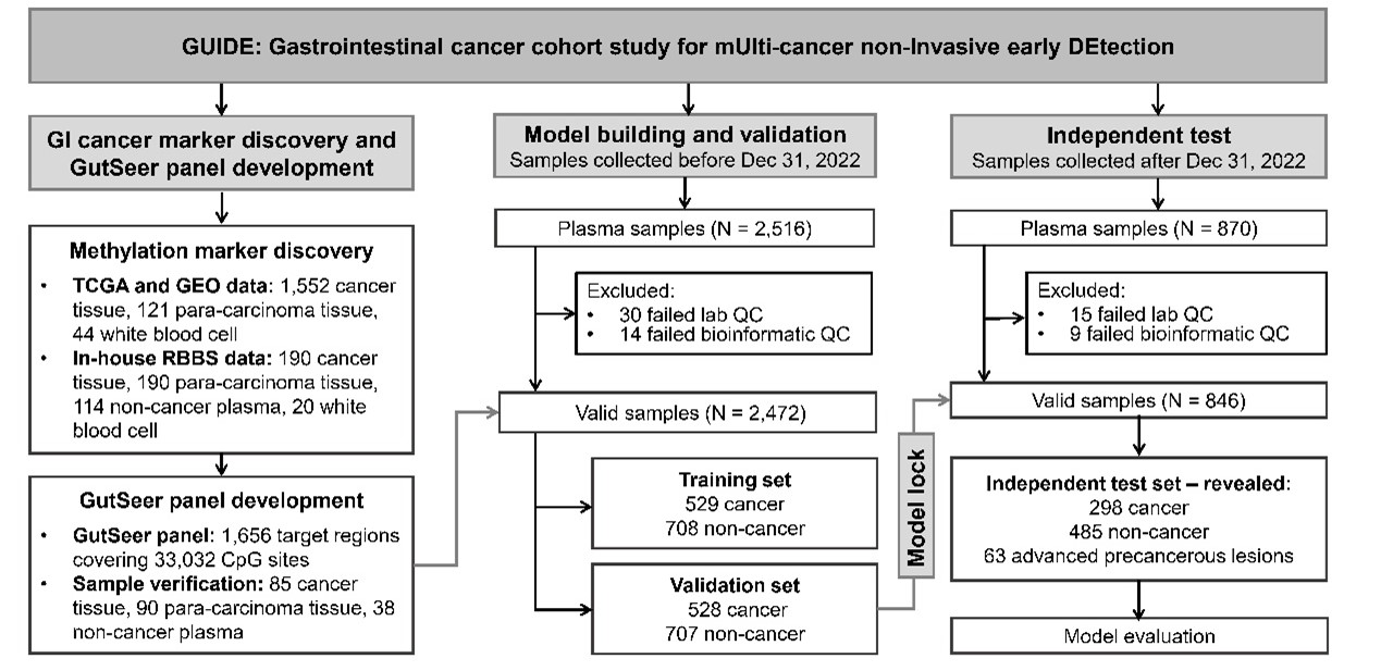 [5] Huang A, Guo D, Su Z, et al: GUIDE: A prospective cohort study for blood-based early detection of gastrointestinal cancers using targeted DNA methylation and fragmentomics sequencing. Molecular Cancer 2025, 24, 163