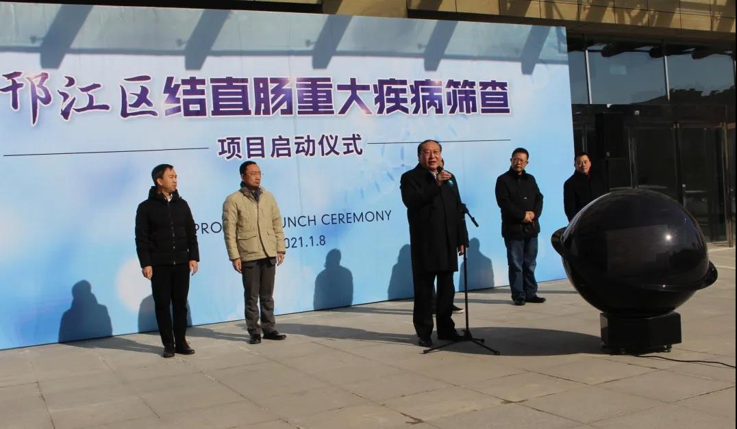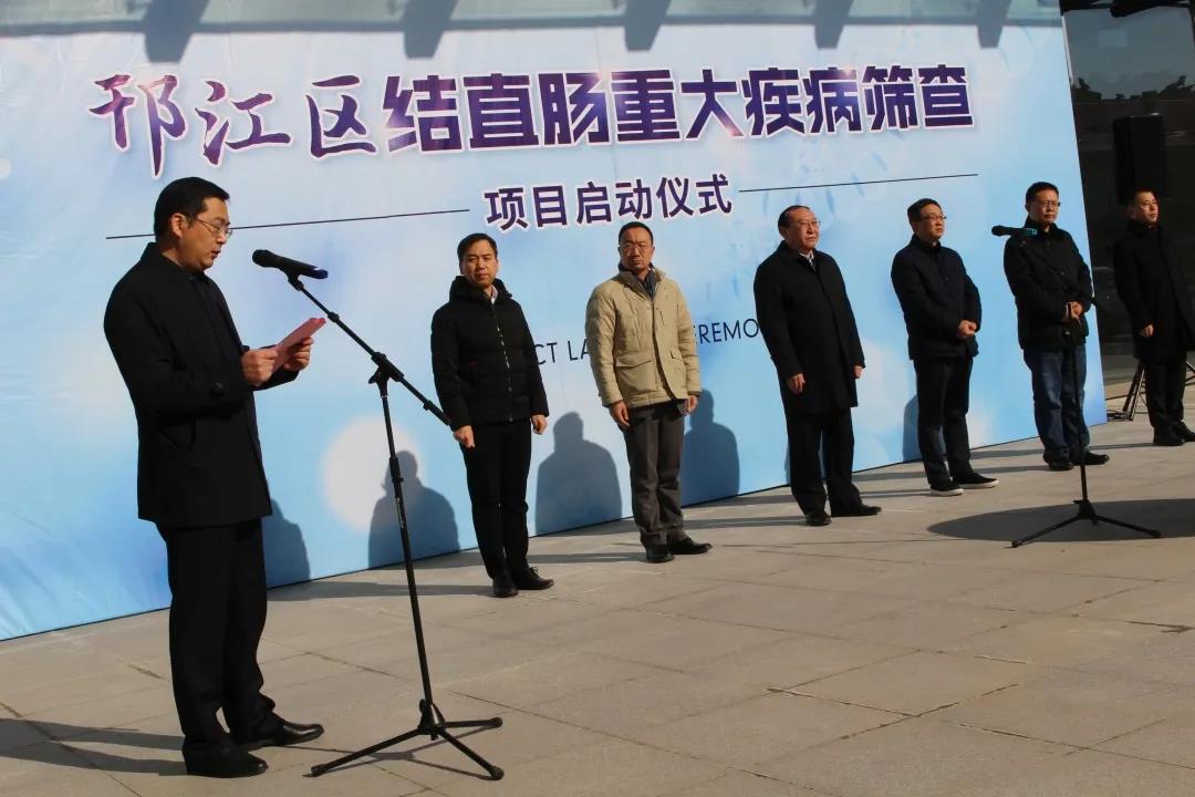 在启动会上,邗江区卫健委党委书记、主任陈焱先生首先阐述了结直肠癌早筛的意义并介绍了邗江区在肿瘤防治方面的具体工作。ok138太阳集团联合创始人兼首席执行官张江立先生随后对项目的实施方案做了介绍。邗江区委常委、高新区党工委书记、管委会主任叶华生先生,扬州市政协副主席、苏北人民医院医疗集团理事长王静成先生先后致辞。