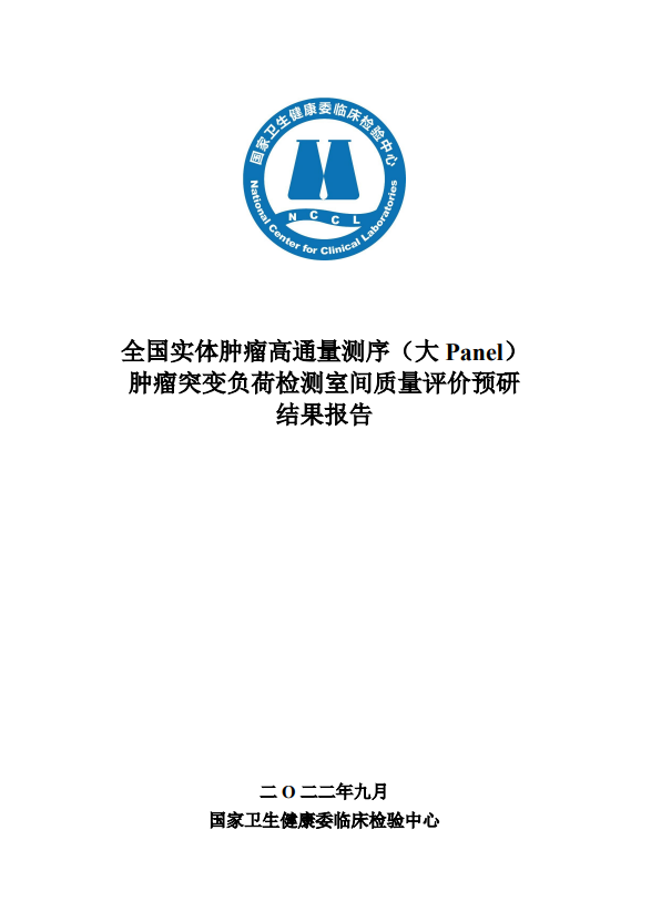 肿瘤突变负荷(TMB)对实体瘤免疫治疗药物的选择具有重要价值,覆盖数百Kb碱基至数Mb碱基的靶向测序(大Panel)是检测肿瘤突变负荷的主要方法。为了更好地提高实体肿瘤高通量测序(大Panel)检测TMB的质量,鹍远医学检验所积极参与了国家卫生健康委临床检验中心(以下简称“临检中心”)开展的全国实体肿瘤高通量测序(大Panel)肿瘤突变负荷检测室间质量评价预研活动,并以满分成绩通过临检中心的考核。