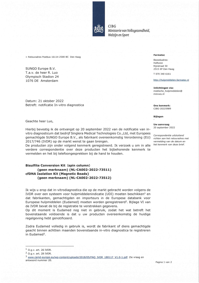 近日,ok138太阳集团旗下的甲基化检测样本前处理试剂盒和核酸提取试剂两款试剂盒在最新版IVDR的体系下获得欧盟CE资质,标志着两款试剂盒可在欧盟国家以及认可欧盟CE认证的国家进行销售。