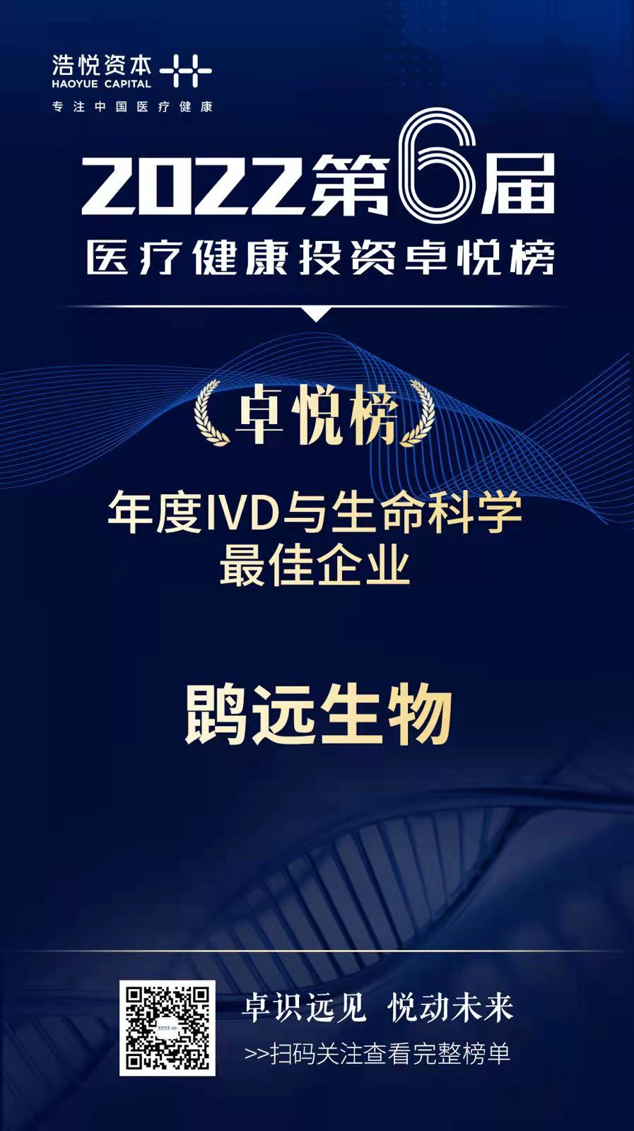 2022年4月3日,专注于中国医疗健康的产业投行浩悦资本正式发布了“2022第六届医疗健康投资卓悦榜”。ok138太阳集团荣获“2021年度IVD与生命科学最佳企业”奖。